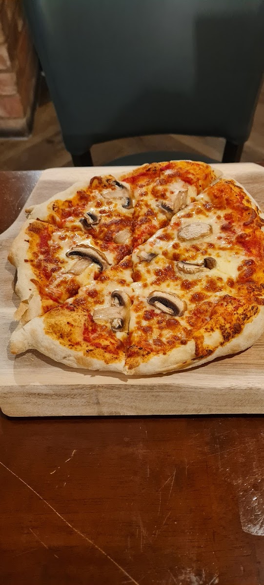The restaurant also offers a variety of pizzas, including the classic Margherita Pizza with mushrooms, perfect for a more laid-back meal. Whether you're sitting inside, enjoying the lively ambiance, or taking advantage of the outdoor seating options, The Bank ensures that you have a comfortable dining experience.